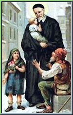 聖人於一五八一年在法國迦斯高出生, 出身農民家庭。 晉鐸後,在巴黎教區當堂區主任, 並創立遣使會,專為神職人員的神修培育, 並以救濟窮人為宗旨。 此外,他又在聖女羅依士的協助下, 創立了仁愛修女會。 一六六○年安逝於巴黎。 聖人因其關心貧病的精神, 故被稱為慈善事業的主保。